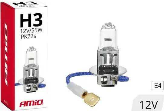 Rodzaj H3 Napięcie 12V Moc znamionowa 55W Podstawa: PK22s Filtr UV Tak Homologacja E4 Minimalna ilość dla odbiorców hurtowych 10 sztuk lub wielokrotność. Karton zbiorcze: 1000 szt