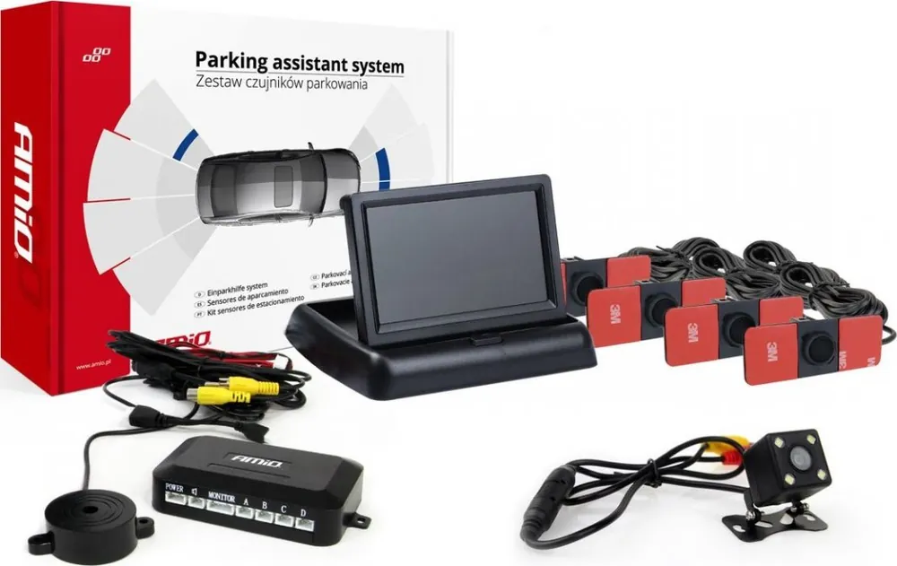 AMiO Zestaw czujników parkowania tft02 4,3″ z kamerą hd-315-led 4 sensory czarne wewnętrzne Oferta