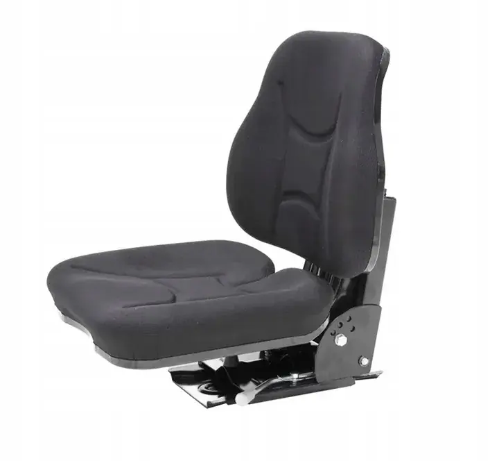 Siedzenie wyposażone jest w amortyzowany siłownik dwustronnego działania, zapewniający 80 mm skoku i regulację obciążenia w zakresie od 45 do 130 kg. Ta funkcja skutecznie tłumi wstrząsy i drgania, oferując komfort nawet podczas jazdy po nierównym terenie.